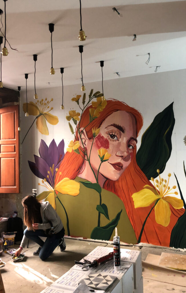 Desde entonces, ha combinado su labor docente —impartiendo clases presenciales de dibujo y pintura, así como cursos online en la plataforma Domestika— con su trabajo como ilustradora y diseñadora para editoriales, agencias de publicidad o personas particulares que quieren contar con su mirada.